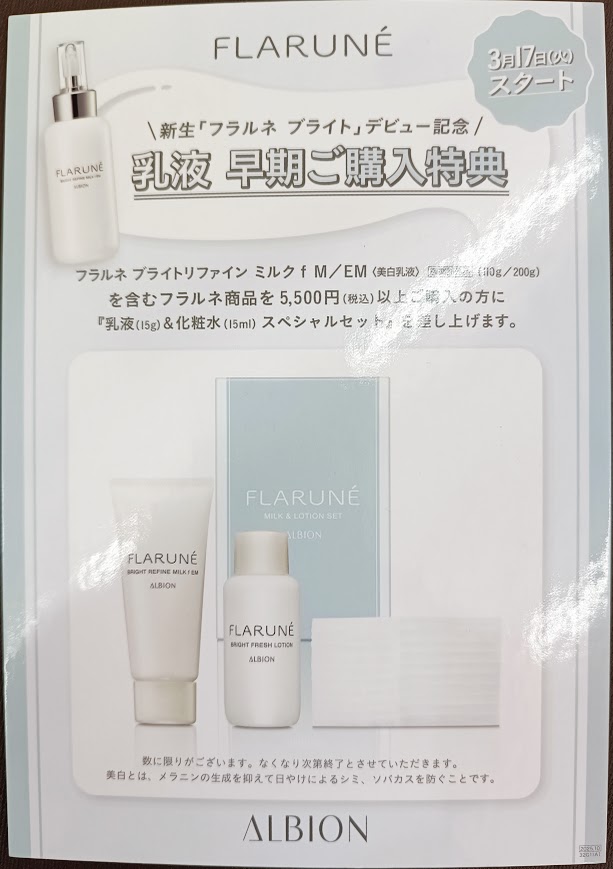 アルビオン フラルネ ブライト リファインミルクを含むフラルネのお化粧品を5,500円以上お会買い上げで